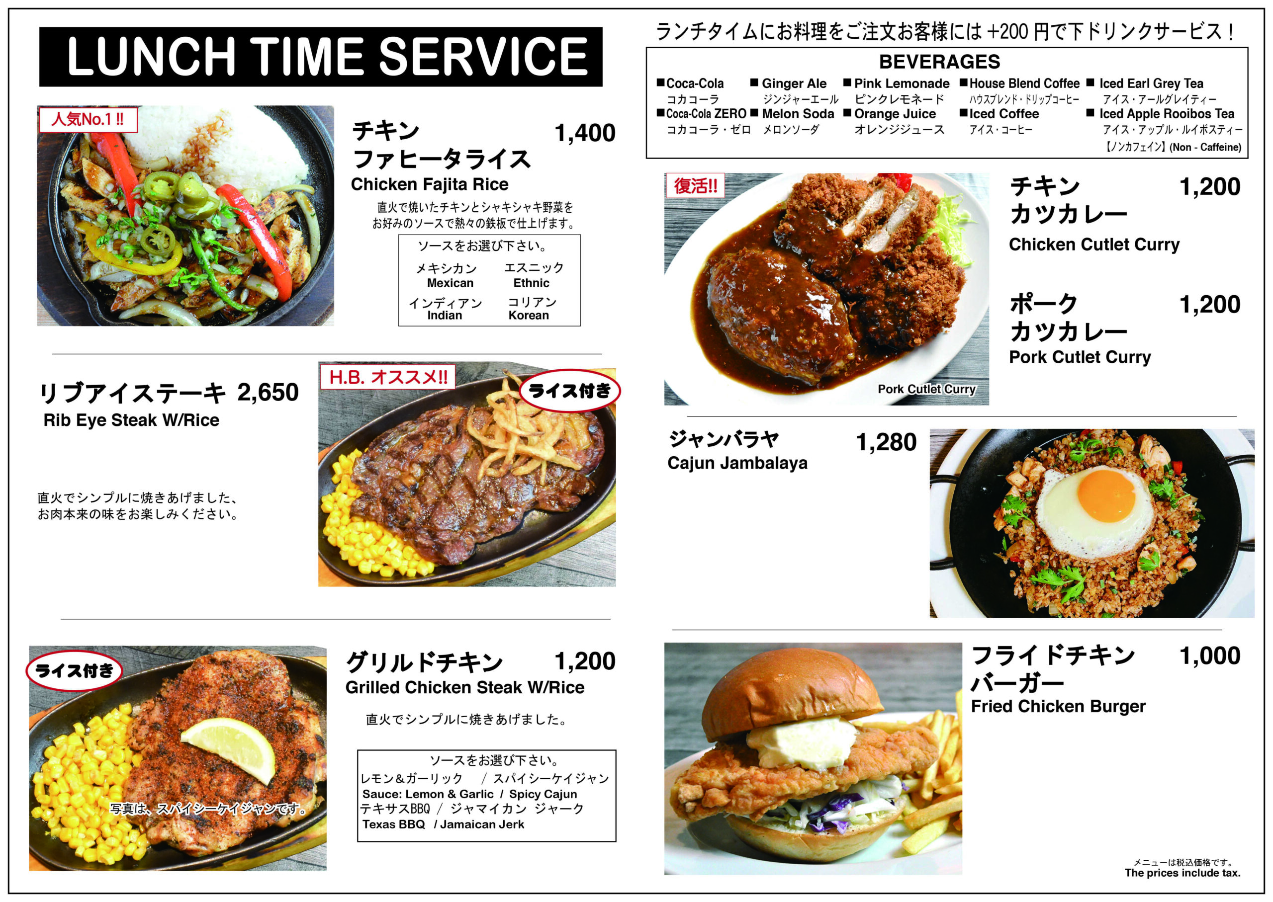 H.B.はサーフィンのメッカである、カリフォルニア・ハンティントンビーチの略。ビーチサイドのトロピカルレストランをイメージした店内は南国ムード満載…