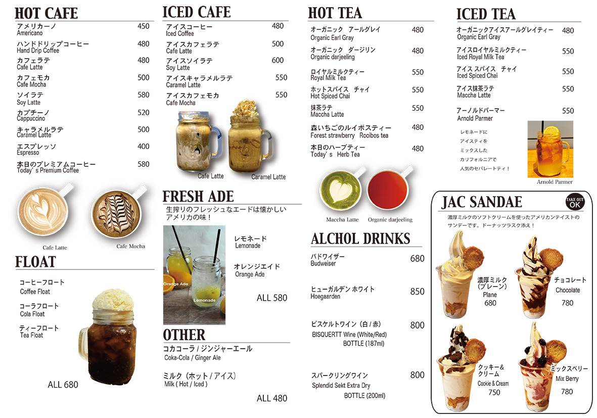 アメリカンなオシャレな店内!アメリカにこだわった豊富なスイーツ&ドリンク。 1日中朝食からランチ、ディナーまで楽しめるアメリカンカフェです。