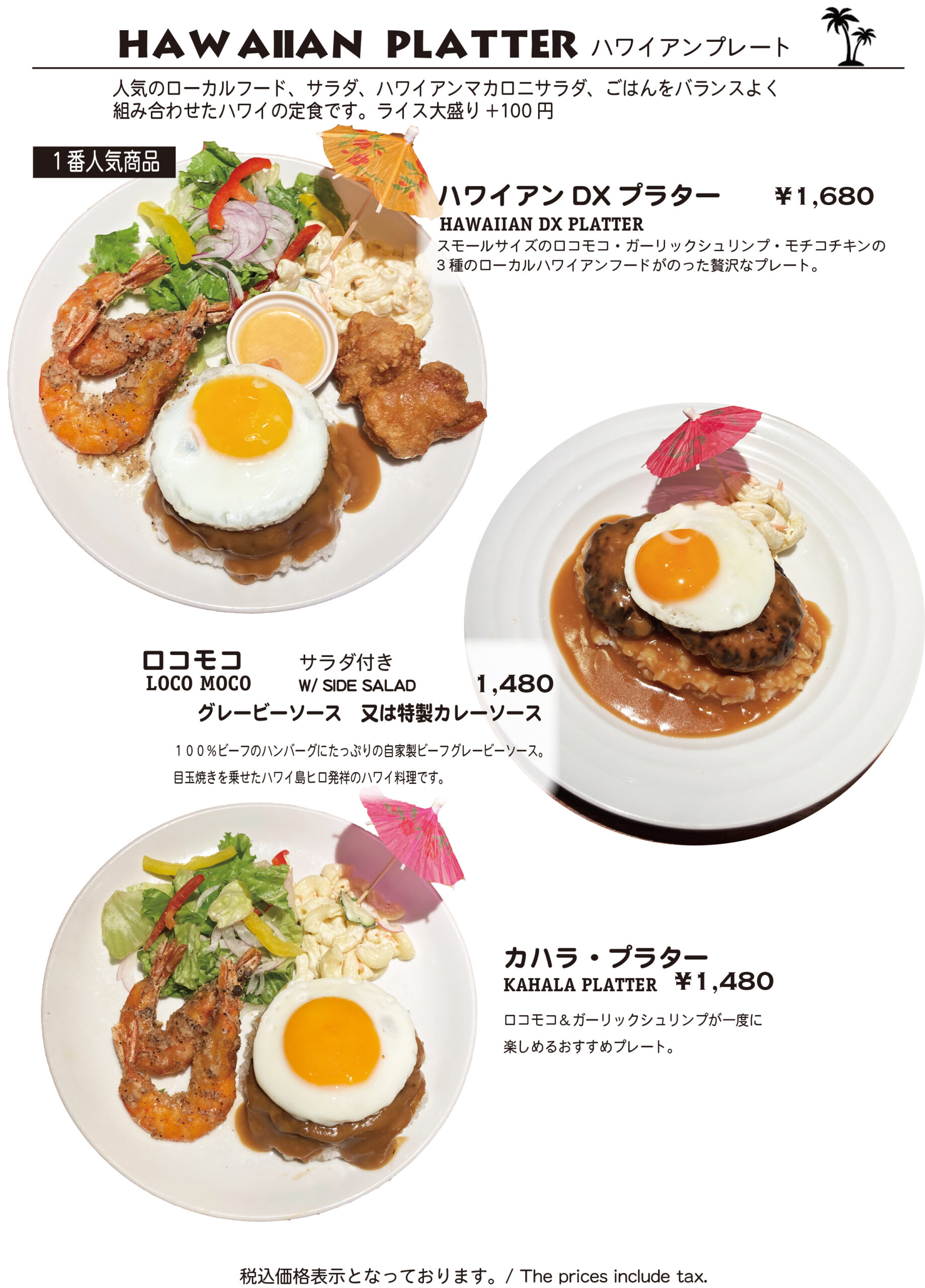 ハワイのローカルフードやスィーツを提供。
